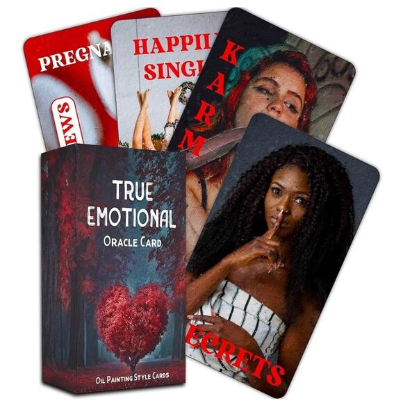 Explore your emotions with the Oracle Card Deck. Featuring a striking red and black design, this deck is perfect for introspective journeys and personal growth.