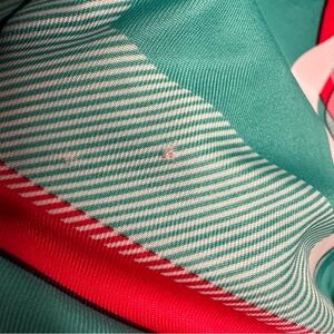 Photos show wear. A few missing stitches on a belt loop. Light stains to the white. A few tiny pin holes. Light wear to the pants hem.