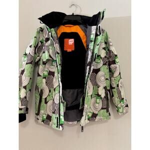Orage Ski Snowboard Hooded Jacket Green White Geometric Design Youth Medium