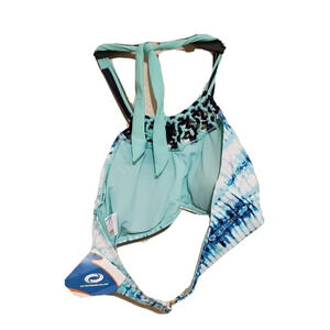 O'rageous Women’s Halter Tankini Bikini Swim Top Blue Tie Dye Crochet Boho Large