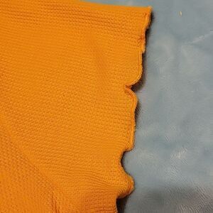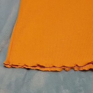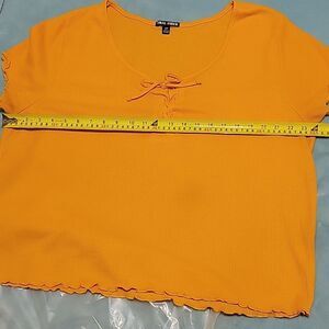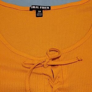 Oral Fiber size 3x ruffle hem tie front yellow top. Waffle weave for comfort! Short Sleeves have ruffle edged as well. EUC only worn once. p2p = 24 inches x 24 inches long.