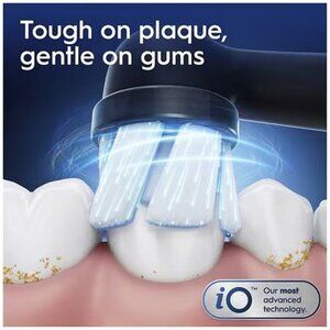 REMOVES 100% MORE PLAQUE vs a regular manual toothbrush with Oral-B's MOST ADVANCED TECHNOLOGY iO: TOUGH ON PLAQUE, GENTLE ON GUMS