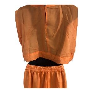 Orange 2piece sheer cowrie shell adorned crop top and split leg pants beach coverup set size large new