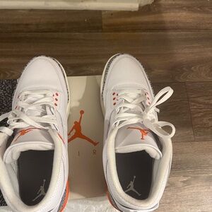 Gently worn, orange and cream Air Jordan 3 with the box.