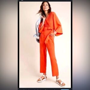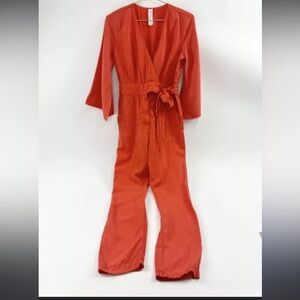 Orange Anthropologie Amadi wrap Jumpsuit casual boho fall classic bow $120