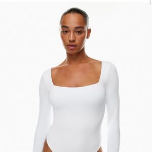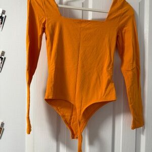 Orange Babaton long sleeve square neck bodysuit #bodysuit