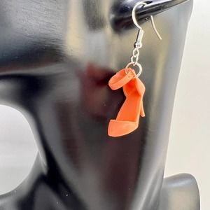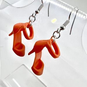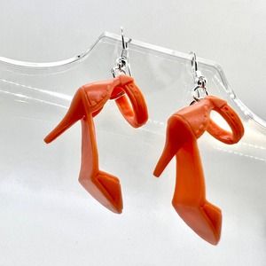 Orange Barbie Shoe Earrings - Coral Orange High Heel Pumps - Novelty Earrings