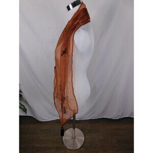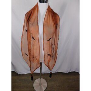 Orange Bats Spiderweb Embroidered Tassel Sheer Scarf OS