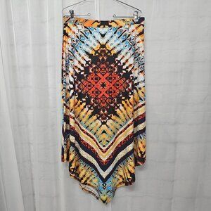 Orange Black Asymmetrical Midi Skirt Boho Western Hippie Festival M