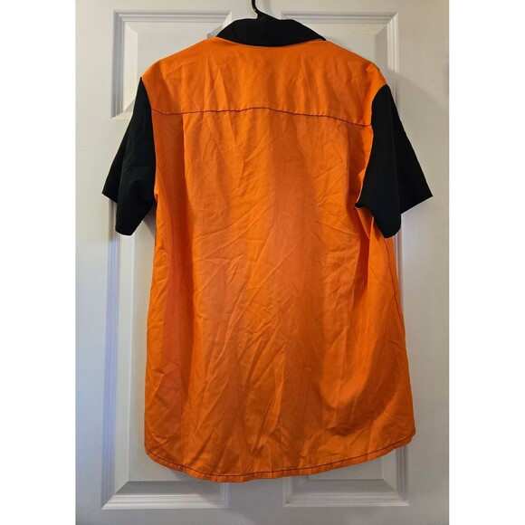 Orange & Black Button Up Mens Medium Collared Shirt Halloween Spider Bowling New