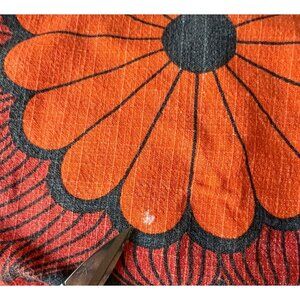 Orange & Black Floral MCM Placemat & Napkin Set Linen Cotton Boho 1970s READ