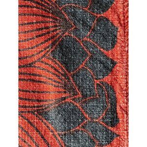 This set of midcentury modern placemats and napkins features a vibrant orange and black floral design. The linen-cotton blend offers durability and a stylish finish for your dining table. Enhance your dining experience with these elegant and functional pieces.