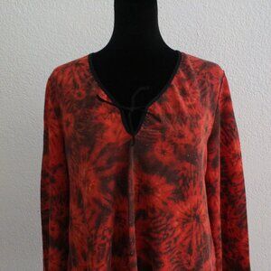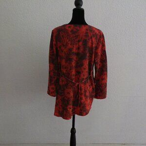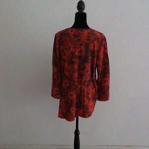 Orange & Black Floral V-neck Long Sleeve Blouse with silver glitters