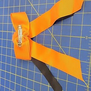Festive orange and black bow with a spider detail. Perfect for Halloween.