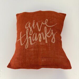 Orange Burlap "Give Thanks" Thanksgiving Decor Accent Pillow 15"x15"