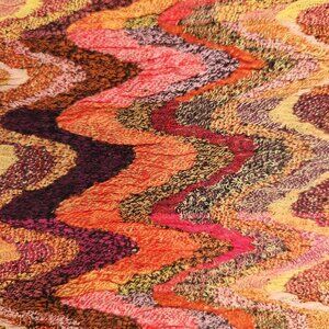 This scarf is absolutely beautiful and features a stunning colorful chevron print, soft fabric, and tassles trim.