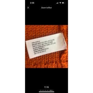 Orange Chunky Knit Open Front Cardigan Sweater Long Sleeve Textured Knit Medium