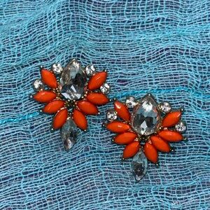 Orange Clear Faceted Crystal Marquis Shape Statement Earrings