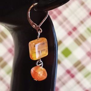 Orange Colorful Glass Bead Stone Dangle Earrings Handmade Jewelry #37