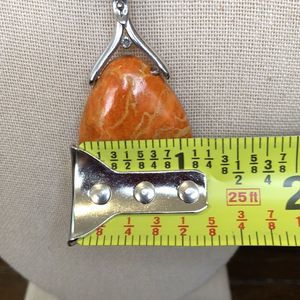 Orange Coral Pendant and Sterling Silver Ornate Necklace NWOT