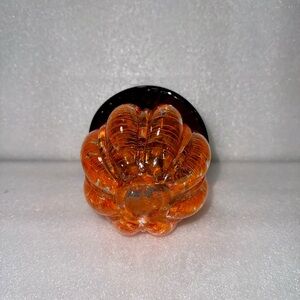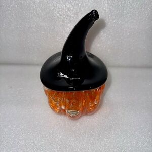 Orange Crackle Artisan Glass Pumpkin with Black Witches Hat Fall Halloween Decor , used , good condition no chips or repairs !