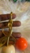 Stylish gold keychain featuring orange and cream cherry charms. Perfect for bags or keys.