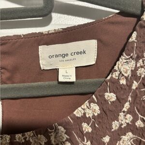 Chic brown dress with floral pattern. Perfect for any occasion. Very modest slip over style with button closure. Size Large, NWOT, never worn.