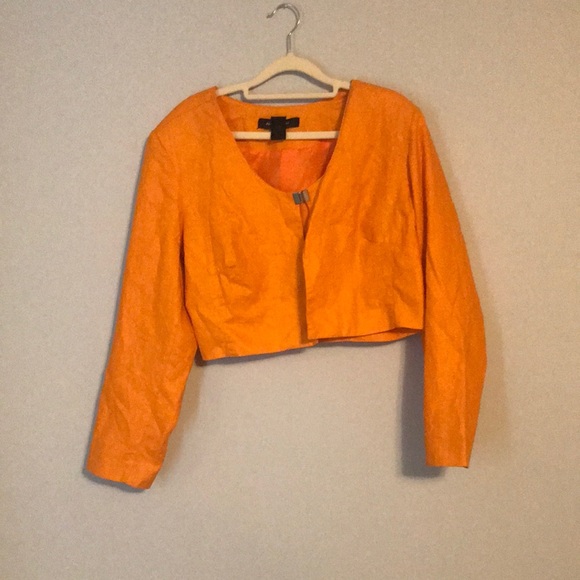 Yellow orange cropped jacket. Outer fabric is cotton linen blend. Lined with poly.