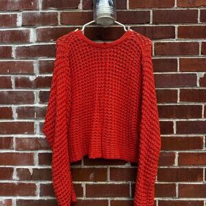 Orange cropped knit cardigan sweater in a size large. Super soft, cozy, and the perfect pop of color. Slightly oversized and easy to layer for that relaxed vibe. Wear it with denim, over a dress, or buttoned up on its own. Such a fun statement piece and ready to ship 🧡✨