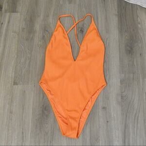 Orange Deep V One Piece Swimsuit Small