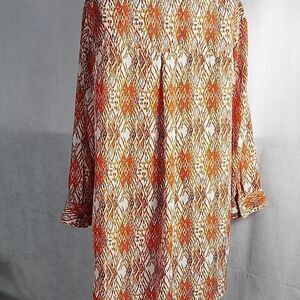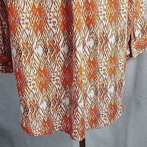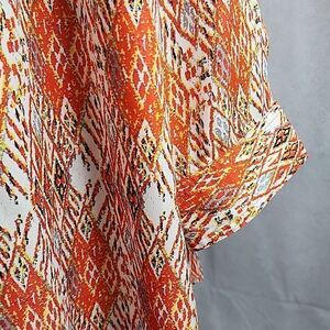 Orange Diamond Pattern Tunic 3/4 Sleeves Size L Chiffon