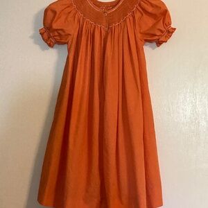 Adorable Orange Smocked Dress with White Palmetto Trees and Crescent Moon -GIRL'S SIZE 6