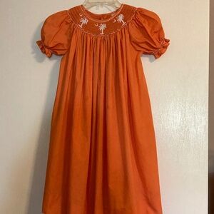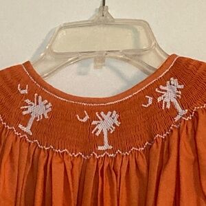 Orange Dress Smocked Palmetto tree, Crescent Moon South Carolina Symbol Girl's 6