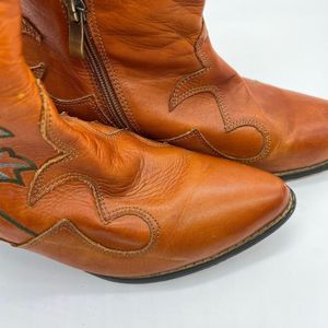 Orange Embroidered Ankle Boots