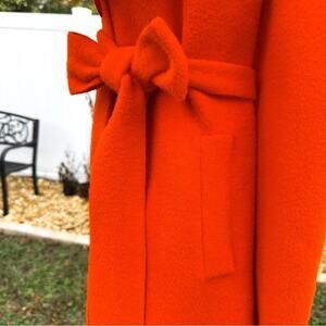 Orange Faux Fur Collar Maxi Wrap Coat – Glam Winter Statement – Size Large