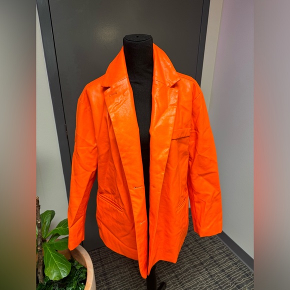 Orange Faux Leather Blazer Jacket