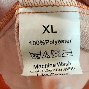 Orange Floral Button-Up Blouse With 3/4 Sleeves XL 100% Polyester Womens Top