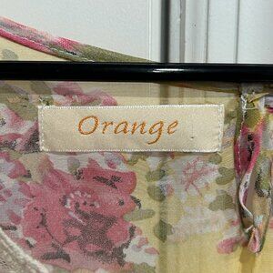 Orange Floral Chiffon Sheer Blouse Lace Trim Lightweight Top Size OS Bohemian