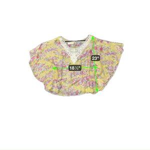 floral blouse, chiffon blouse, sheer top, lace trim blouse, flowy blouse, women's top, lightweight blouse, yellow blouse, pink floral top, casual blouse, lace detail top, loose fit top, spring blouse