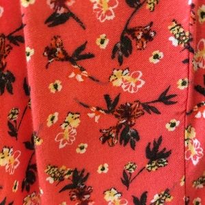 Juniors Small Takara romper bought at Dillard’s — super cute wrap-style floral pinky-orange romper. Great for a teen girl to wear when it’s warm out! Really soft fabric too.
