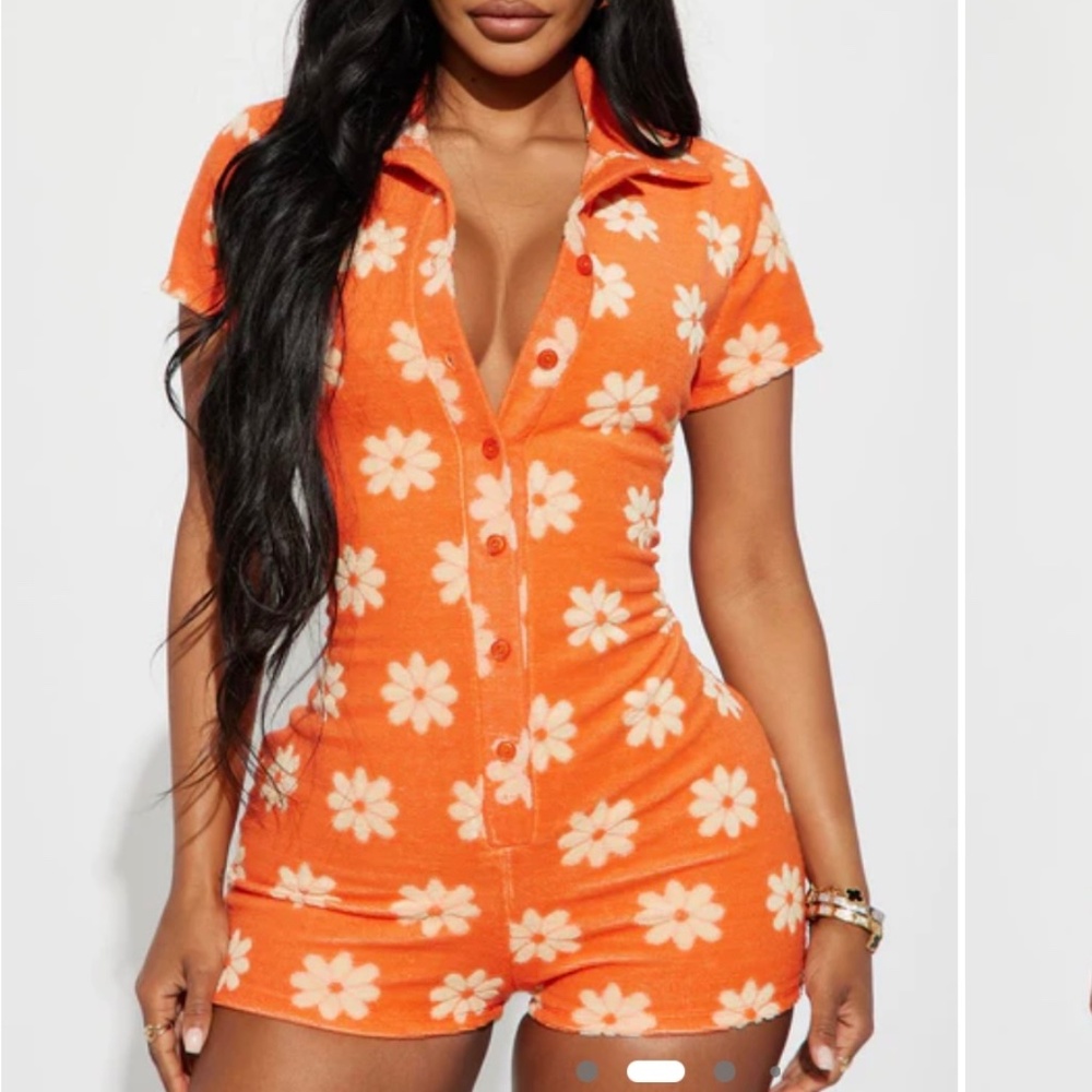 Orange Flower Fields Terry Cloth Romper. Never Worn.