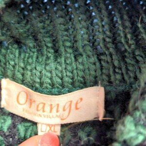 Orange Fountain Village Thick-Knitted Sz L/XL Cowl Neck Deep Army Green Sweater