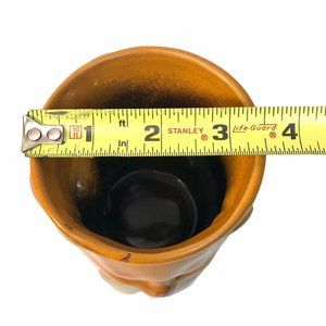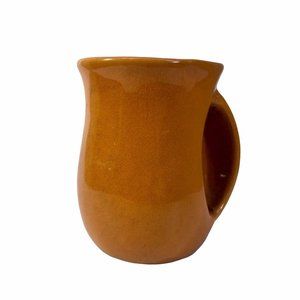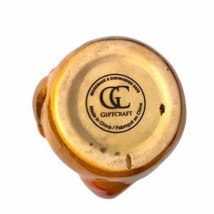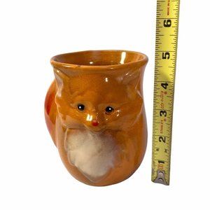 Gift Craft Ceramic Orange and White Fox Hand Warmer Coffee Cup Mug. Has side pocket that warms the fingers of your right hand when you clasp a hot drink! Measures just under 5" tall, 3.5" in diameter, and 4.25" wide including the pocket on the side. Holds 16 fluid ounces. Glazed in orange on the exterior, with brown on the inside of the mug, with hand painted details on the fox's face, ears, and chest.