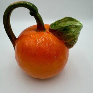 Bright and playful ceramic orange juice pitcher by Haldon Group, perfect for adding a touch of summer to your breakfast table. Enjoy fresh orange juice served in this charming orange fruit design pitcher.