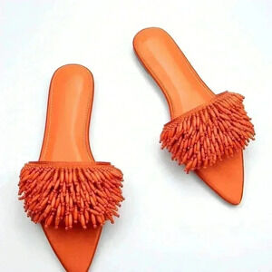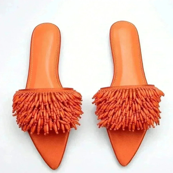 Orange Funky Women's Bead Embroidery Decorated Fabric Flat Comfortable Sandals