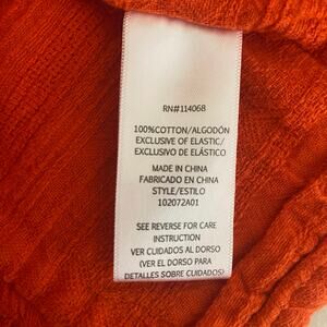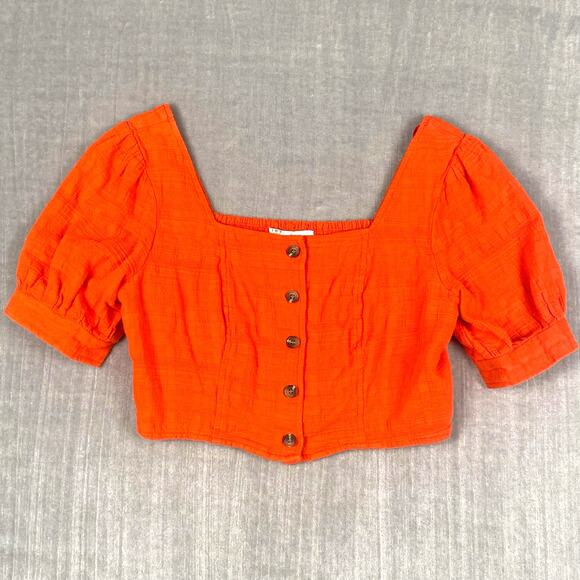 Orange Gauze Smocked Crop Top Womens Size XL 100% Cotton Puff Sleeve Milkmaid