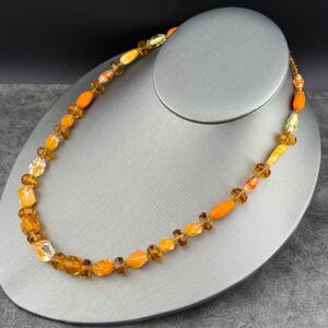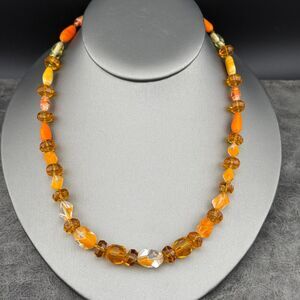 Orange Givre Swirl Glass Vintage Beaded Crystal Gold-tone Necklace UV GLOW