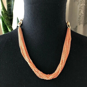 Orange Gold Chain Necklace Earrings Set Jewelry