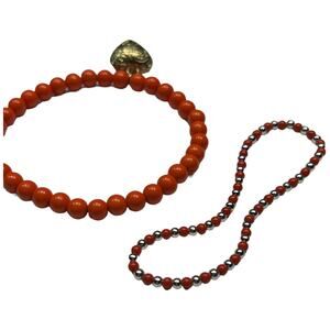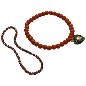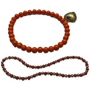 This stunning bracelet features a combination of orange, gold, and silver beads, creating a vibrant and elegant design. The rich colors come together in a beautiful, eye-catching pattern that adds a pop of color to any outfit. The beads are carefully strung together, providing both durability and style. Whether you're dressing up for a special occasion or adding a touch of color to your everyday look, this bracelet is a versatile and stylish accessory. In excellent pre-owned condition, it’s a great addition to your jewelry collection.
