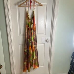 Orange & Green Vibrant Multicolor Halter Maxi Dress One Size festival hippie